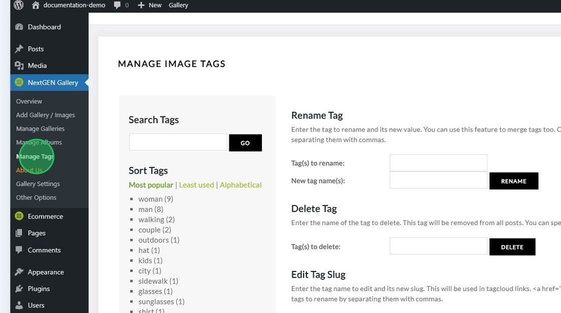 You can also display tag cloud in any post or page. Clicking on any tag will dynamically generate a gallery with any images that include the specified tag.